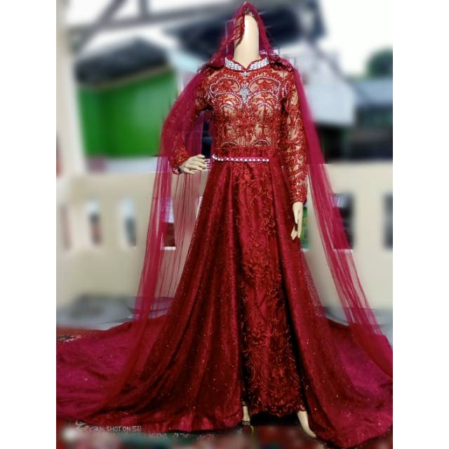 Jual Gaun Pengantin Model Span Rok Ekor Panjang Warna Merah Marun Shopee Indonesia